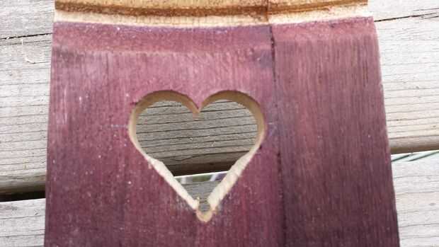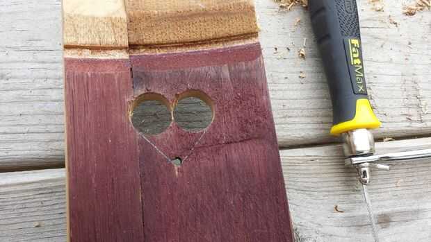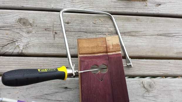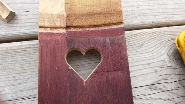 1. Con un borde recto, marque una línea desde el borde de los lóbulos del corazón al borde del agujero de 1/8.