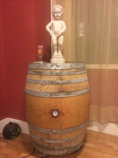 he comprado un barril de vino 25 galones en una venta de garaje por 10$. Convirtió en un estante del vino iluminado.Paso 1: el barril Se muestra aquí es el barril como originalmente lo compré. Realmente fue utilizado para hacer vino por su anterior
