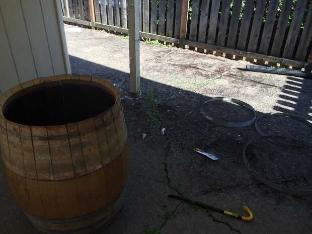 En primer lugar, usted va a necesitar un barril de vino. Uno de mis amigos trabaja en una bodega por lo que he podido obtener un barril de vino para una bonita barata. Abrí para arriba y deje que se seque hacia fuera porque había aún residual vino en ella. hecho el olor de la casa fuertemente de vino, así que tuve que ponerlo fuera. necesita eliminar pequeños clavos en los anillos de metal. Luego golpearon esos tontos sueltos con un martillo u otro objeto adecuado para la fuerza bruta. Quitar los anillos porque podr nunca volver el cañón juntos si lo hace.
