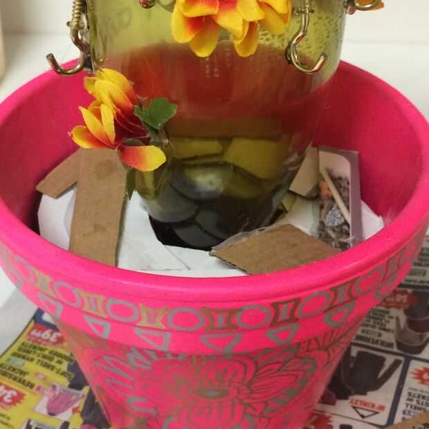 Este paso es para personas que no tienen suficientes piedras para llenar la olla de barro una vez que la botella se pega en él.