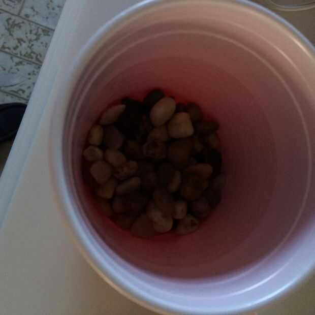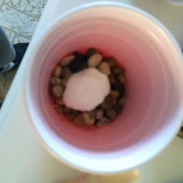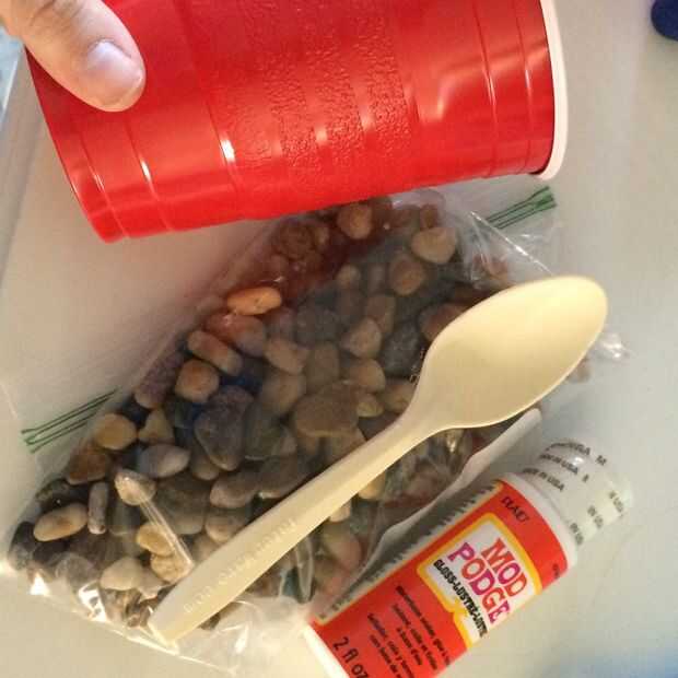 Mezcle una pequeña cantidad de modge podge con algunos guijarros. Si las piedras son realmente blancas, añadir más piedras a su taza/tazón de fuente.