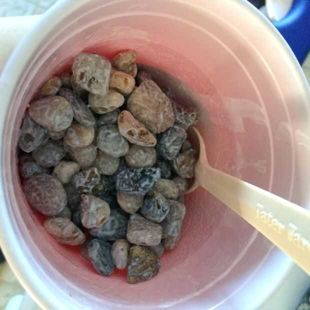 Usar cuchara para presionar suavemente los guijarros. Esto se asegurará de que cuando los guijarros de la secan, que se peguen juntos y a la base (cartón o fondo de la olla).