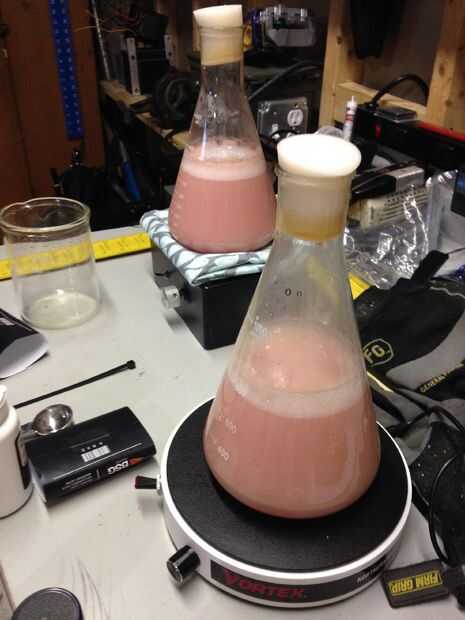 Añadir la solución de agua must/water o azúcar al matraz de Erlenmeyer con una barra de agitación. Rehidratar la levadura según las instrucciones en el envase y añadir al motor de arranque. Poner en la placa de agitación en baja durante 24 horas.