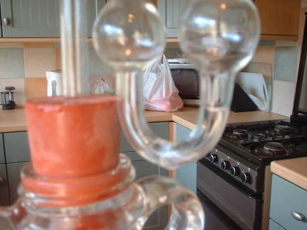 Gas se escapa a través del bloqueo de la fermentación, haciendo un ruido de 'pasta'.