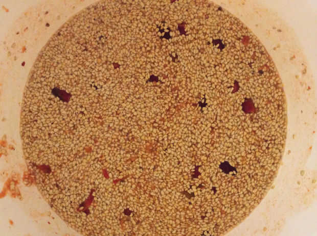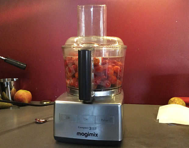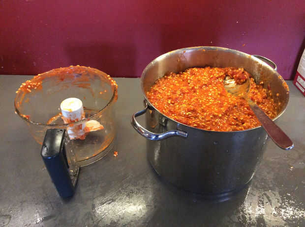 -Puré de rosa mosqueta. Si utilizas un procesador de alimentos: evitar los cuchillos de metal. La cuchilla cortará las semillas que es malo para el sabor. Utilice el cuchillo de plástico de la masa. Como se puede ver 4 kilo es una olla de sopa de 5 litros.