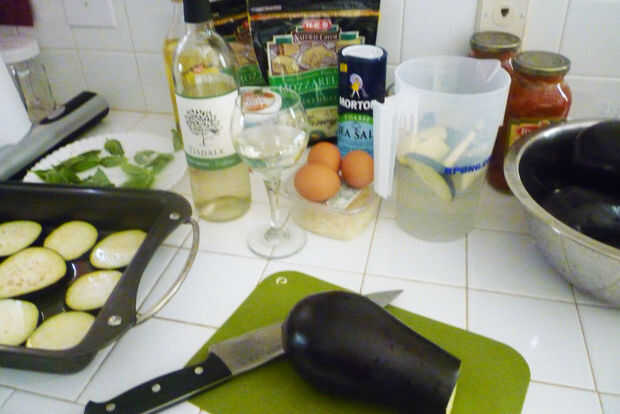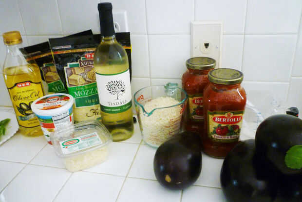 Vino empapado/salteado de berenjena parmesano (1 / 7 paso)