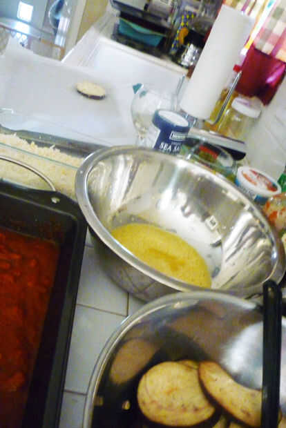 Lo que he aprendido de haber hecho este plato una y otra vez es que generalmente cuando sale pan freír la berenjena, la berenjena, aunque frito empapado en aceite de oliva. Con el fin de reducir la cantidad de aceite en la comida y preparación decidí hornear las berenjenas, desde que el sauteeing había previamente concurso.