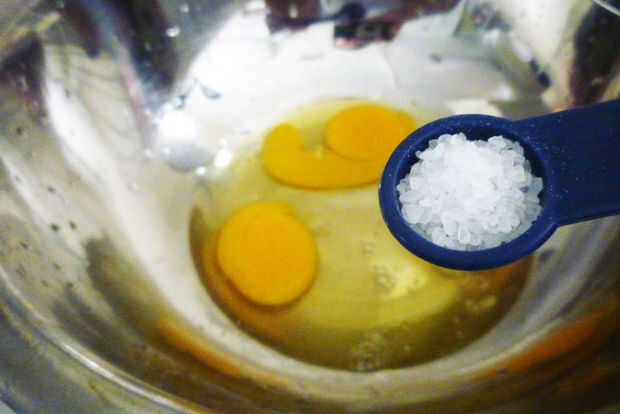 - Mojar las rebanadas de berenjena de ambos lados con la mezcla de huevo