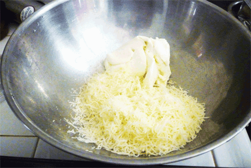 • 10 onzas de mozzarella (generalmente sacos de 1 1/2 tamaño regular de mozzarella rallado)