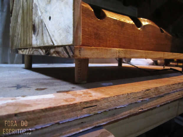 Utiliza tornillos a través de corchos de vino para los pies del estante del vino y había barnizada todos, 3 capas.