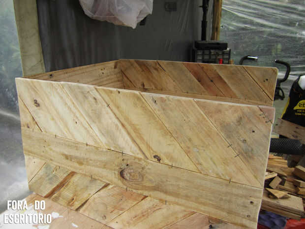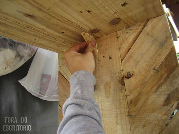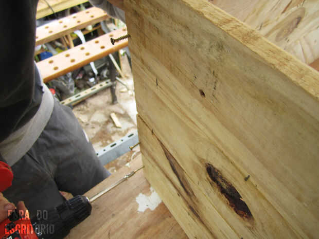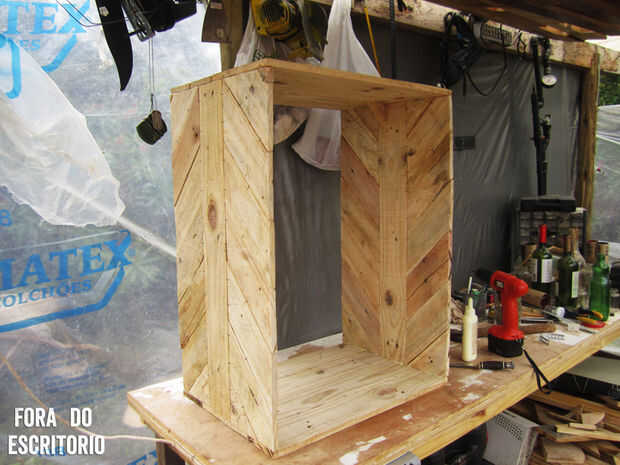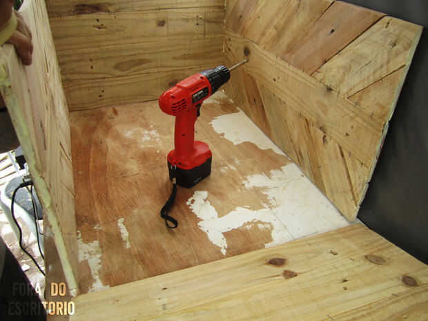 Para hacerlo todo un poco más robusto, pega y atornilla 2 triángulos en cada esquina superior. Fue quitado después de fue todo montado.