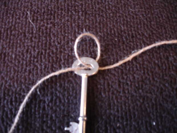 Para hacer este hilo al final a través del lazo en la llave y empuje hacia abajo toda la longitud de la cadena hasta que llegar a donde desea colocar la primera clave.