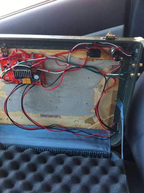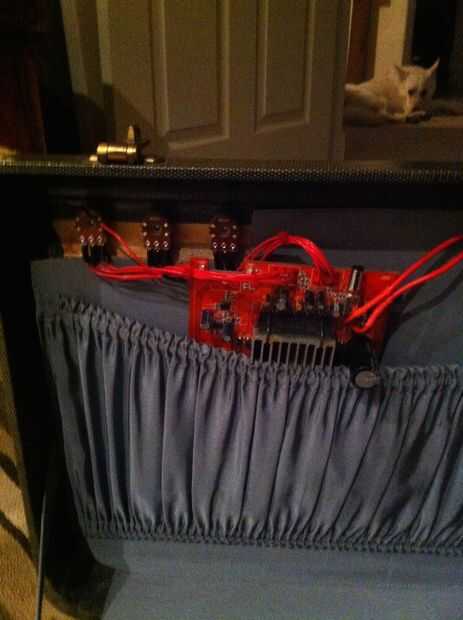 El cableado fue bastante simple. El amplificador tenía originalmente todas las entradas y salidas marcadas, por lo que es sólo una cuestión de conectar los altavoces a los puertos de altavoz, la potencia a la entrada de energía, etc.. La mayoría del tiempo que pasé en el cableado fue extendiendo a los componentes de la Junta Directiva de la amp con alambres. Si usted tiene alguna pregunta de cableado, puede dejar un comentario o enviame un mensaje.
