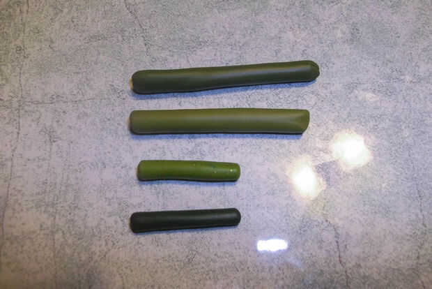 Para las hojas y los remolinos, mezclar el verde con negro y amarillo. Como se puede ver en la imagen, yo he obtenido cuatro diferentes tonos de verde.