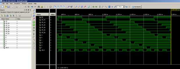 De todos modos, la simulación es sólo para que mí para ver si la idea funciona y comprobar que la lógica haría el truco. Si está interesado, puede encontrar el proyecto de simulación que se adjunta, descomprimirlo y abrir el "ClockMult.xise" con ISE. Una vez que hecho hasta ahora se puede grabar en una CPLD, no, quieres diversión vintage! :)
