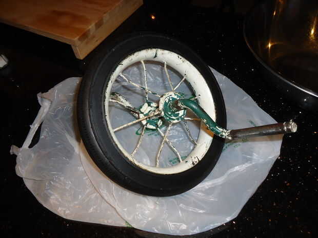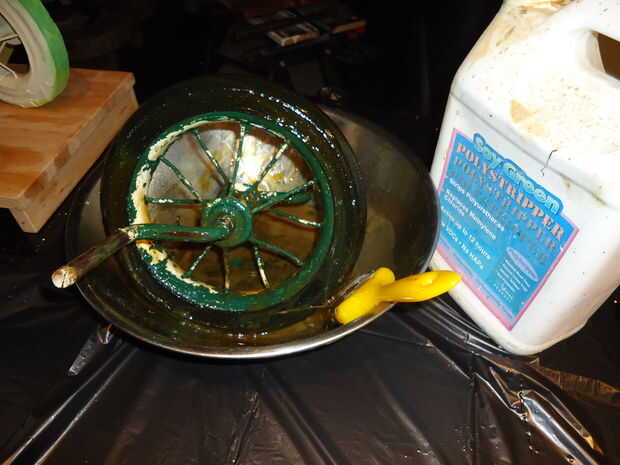 Añadir más decapante para conseguir la pintura original de llevar a cabo la Dremel con un disco lijador para tomar el trike hasta metal desnudo.