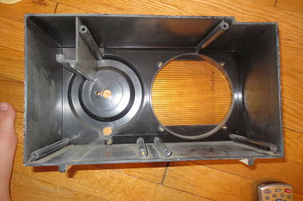 Primero tienes que sacar la tapa posterior de la radio que sólo se realiza con tornillos, así que todo lo que necesitas es una llave o si tienes suerte los dedos. Entonces para adaptarse a todas las cosas que van en la radio tenemos que limpiar el circuito y el altavoz. Cuando pensé en tomar fotos que ya había limpiado hacia fuera, pero el proceso es bastante simple. El circuito y el altavoz son ambos conectados al cuerpo principal con los tornillos, así que todo lo que tienes que hacer es Desenroscar y todo viene cayendo hacia fuera. La detención de lo único que la placa de circuito es que su adjunto a las perillas frente así todos que tienes que hacer es pop ellos apagado y te Sujete más adelante.