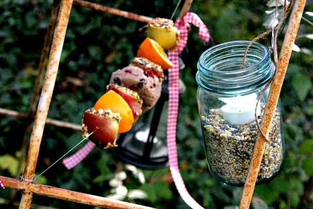 -Decoraciones-cintas, guirnalda, tarros de masón y todo lo que quieras usar para hacer el alimentador más bonita tanto para usted y los pájaros.
