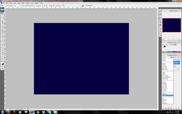 2. , haga clic en "normal" y buscar "luz suave", que haga clic en. Haga clic en el círculo pequeño, media sombra y haga clic en "color sólido". Cambiar el número de color a 070142 y haga clic en Aceptar. Haga clic en normal de nuevo y haga clic en la opción de exclusión.