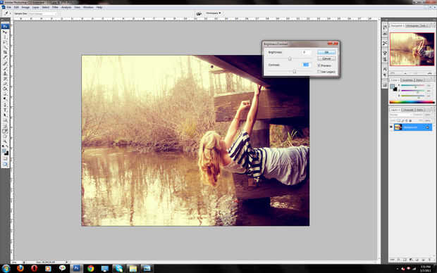 6. ir a la capa y haga clic en acoplar imagen. La siguiente parte es optinial... Haga clic en el capa - ajusments - brighness/contraste. Cambiar el contraste a + unos 20 y haga clic en Aceptar. Y eso es todo. Además de ahorro de grueso :)
