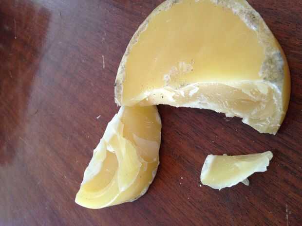 No estoy seguro de lo que yo usaría para un molde de la próxima vez y de hecho terminé fusión los trozos en un puck cuando estaba hecho para la facilidad de almacenamiento. La cera era muy pegajosa en el molde y era tan agradable que los envases de crema de queso fueron sacrificios. Terminé cortándolos.