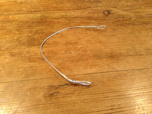 En el mango, forma un bucle en cada extremo con los alicates. Trate de mantener las vueltas apretadas para que las brocas afi ladas estén metidos.