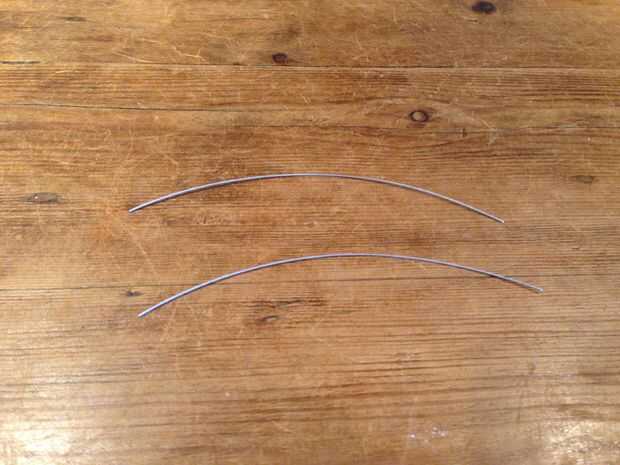 Para añadir un gancho, corte dos trozos de alambre. La longitud que desea su mango (más un poco) y el tiempo suficiente para envolver alrededor de su jarra (más un poco).