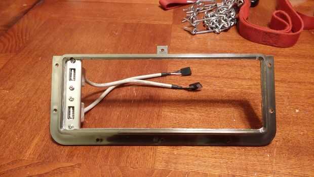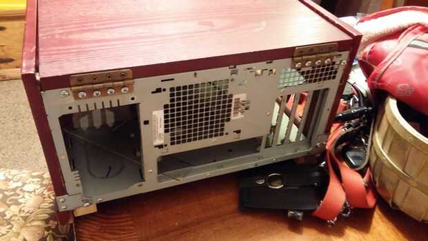 Use la parte superior de la (ahora) del panel posterior del ordenador para montar las bisagras superiores para la radio (se verá por qué en un paso posterior)