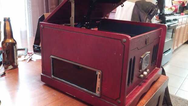 El área del reproductor de CD hacia fuera de la tripa y tallar hacia fuera el "aro" en el exterior así que usted está a la izquierda con un anillo de la belleza. Instalar una USB ranura del panel posterior con resina epóxica. Tallar por algún cristal de plexi para el tamaño que necesita. Rastrear el interior del anillo de belleza con un seco borra el marcador y cortar generosamente al exterior de las líneas. archivo y arena para caber. Ser lento y cuidadoso, ir rápido o romper. Pintar el vidrio del plexi si eliges (o no hacer que el ordenador dentro de un poco más visible)