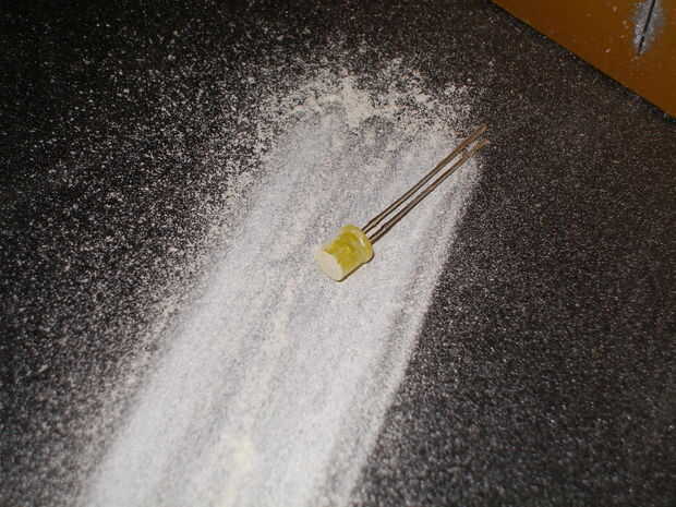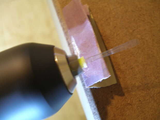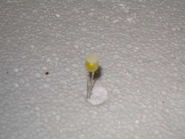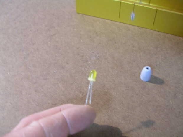 Pruebe la colocación de lo LED. LED más pequeño puede caber sin mucha modificación. Las que usé eran demasiado grandes; desea que el extremo del LED a ser aproximadamente 1/16 detrás del borde final de su cubo. Me tiraron el LED hacia atrás en un taladro y lija el borde de la base. Utilizando una hoja de papel de lija de grano 320 también lijar la punta del LED abajo de plano, fui de ensayo (no sé cuánto pude quitar sin dañar el LED). No te preocupes pulido el LED; la superficie difunde la luz para un aspecto más realista.