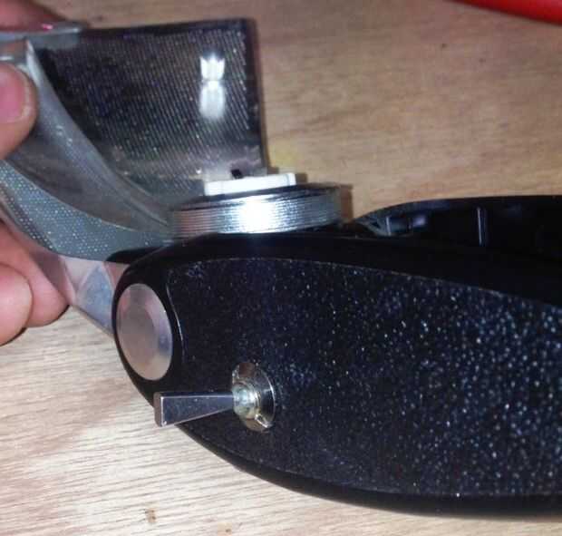 3. a continuación, agregue el modificador. Recientemente encontré un plano de control remoto vintage remota que tenía algunos cool conmutadores acoplados. Usé uno de estos y sujeta al cuerpo del flash.