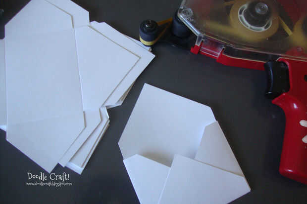 Entonces se puede trazarlo en 1 hoja con lápiz... entonces la pila un par más debajo de las hojas y cortar hacia fuera. Utilicé un cortador de papel para el rectángulo básico y, a continuación, tijeras para las muescas.