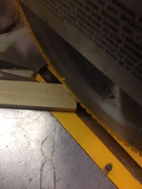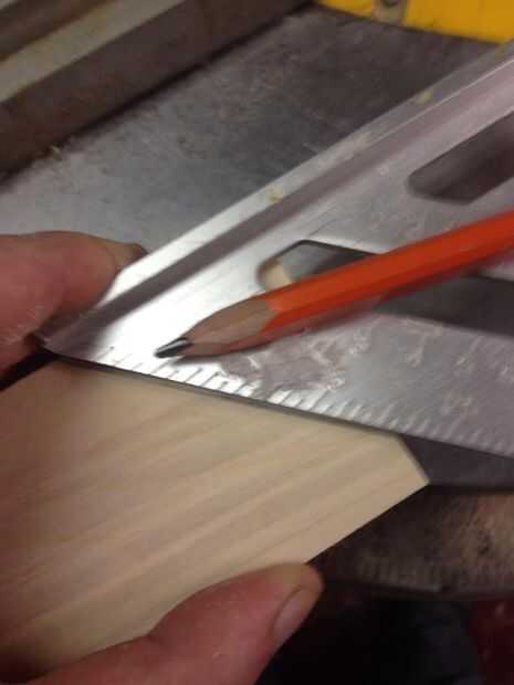 Una vez que tengas todas las 9 piezas 45, reservar 8 de ellos y coge su 1 x 3 x 46 "y alinee los bordes laterales y trazar su 45 sobre el 1 x 3 x 46", extienda la línea con el cuadrado de su velocidad, restablecer su tope para el 1x3s y hacer 4 cortes más.