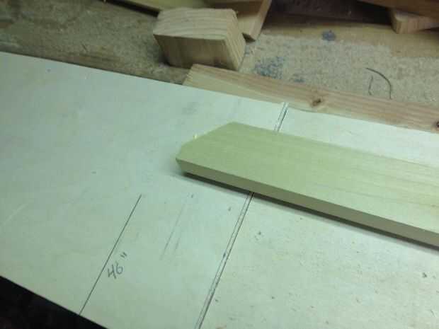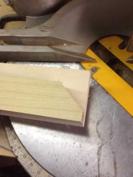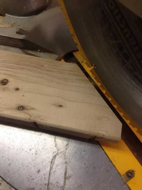 Ahora coge tu 9 1 x 2 x 46", Mida hacia abajo una media pulgada desde la parte superior de uno de los tableros y marcar un 45.
