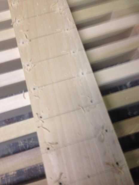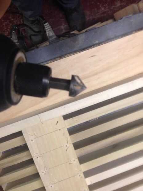 Un montón de agujeros de taladro, 2 por cada listón a través de los tres Cruz apoya, luego volver atrás y usar un fregadero contrario poco en todos los agujeros que ha perforado. Esto ayudará enormemente a reducir las posibilidades de la Cruz admite agrietarse, pero no una certeza.