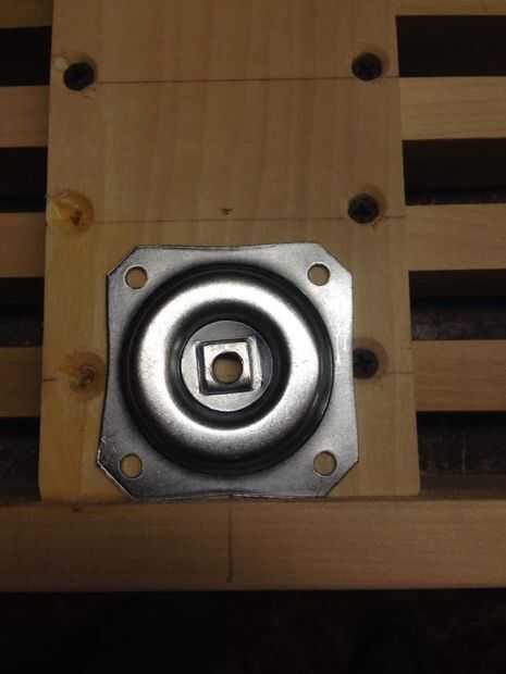 Establecer su mesa otra vez y saque sus soportes de montaje de su embalaje. Usando las marcas de la Cruz apoya, alinee el borde de su soporte con el punto central y el tornillo de abajo. Siempre he jodido estas en solo directamente a través de la madera sin un agujero piloto y nunca había tenido uno romper, pero por todos los medios si usted quiere hacer algunos orificios adelante.