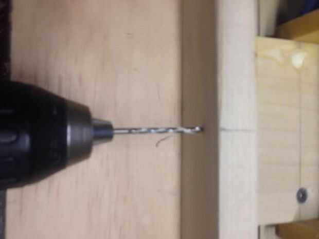 Perfore un orificio piloto en esta marca, realmente tratar de conseguir este uno derecho a través del centro de su apoyo cruzado. Luego use el fregadero mostrador poco a taladrar el agujero, no ir demasiado profundo necesitamos mucha madera para agarrar aquí para realmente sostener estos lados, pero necesita de un agujero para conseguir tus enchufes pegados después estás jodidos.