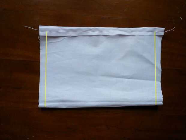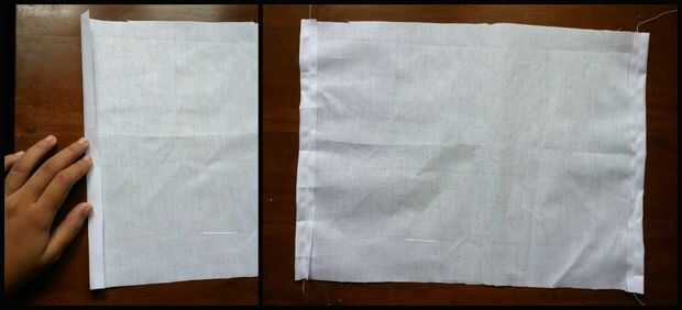 Tomar a la tela del forro, doblar y coser 2 lados de la misma como se muestra en la imagen,