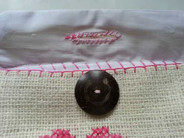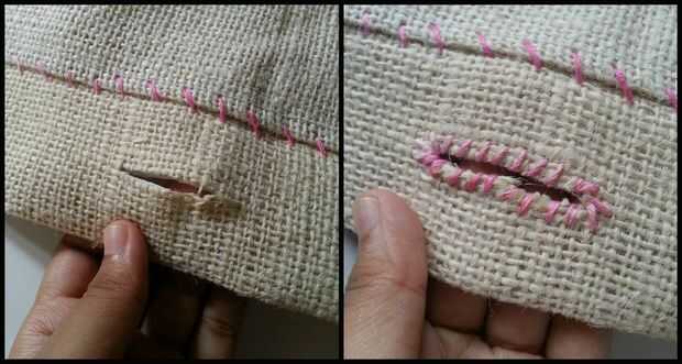 Utilice tijeras para cortar un área pequeña para el agujero del botón y coser alrededor de los bordes del agujero de botón,