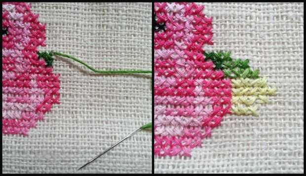 He utilizado hilo de bordar verde sombreado de Cruz costura las hojas.