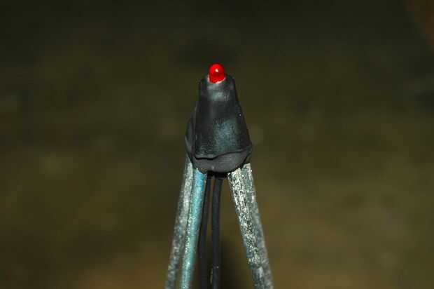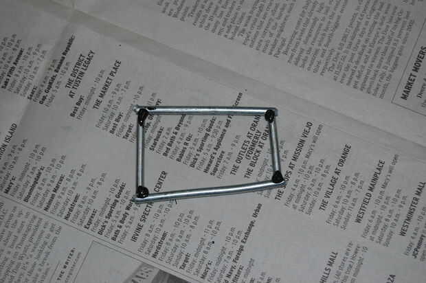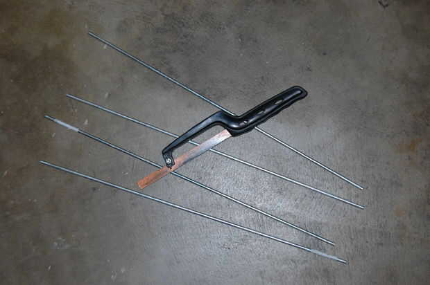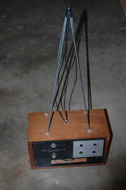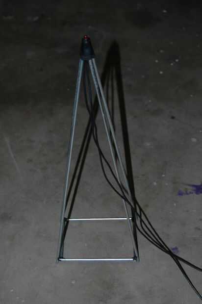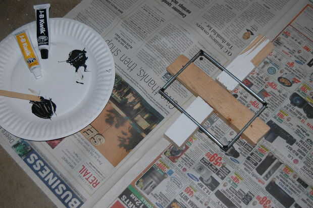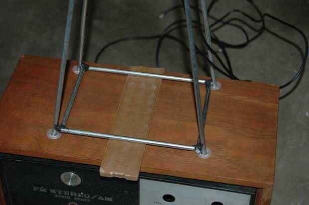 Primero querrá cortar sus barras de metal que corren vertical en su torre. Corté uno de mis a 18" de longitud. Para encolarlos, coloque la base de cada varilla en los tacos de yeso en la parte superior de la radio vintage. Entonces se inclinan todas las cañas juntos en la parte superior con el LED que parpadea en el centro. Mezcle su JB weld y se aplican a la articulación en la parte superior. Que este siente por 4-6 horas hasta que se encuentra totalmente.