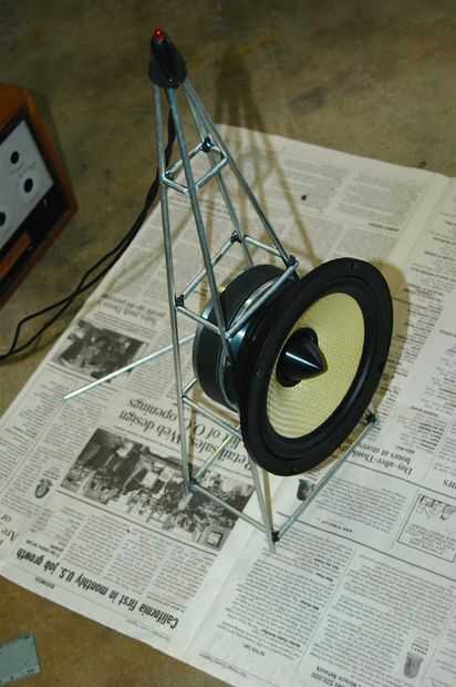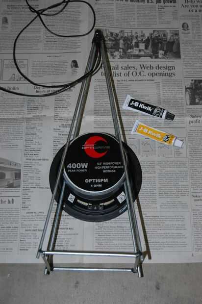A continuación usted querrá conectar altavoces a la torre. Ponga el altavoz boca abajo con la torre en la parte superior y pegar el altavoz a la torre. Tratar de cubrir tanto la superficie como sea posible en el altavoz y la torre con el pegamento para aumentar la fuerza de sujección.