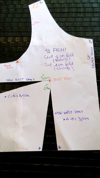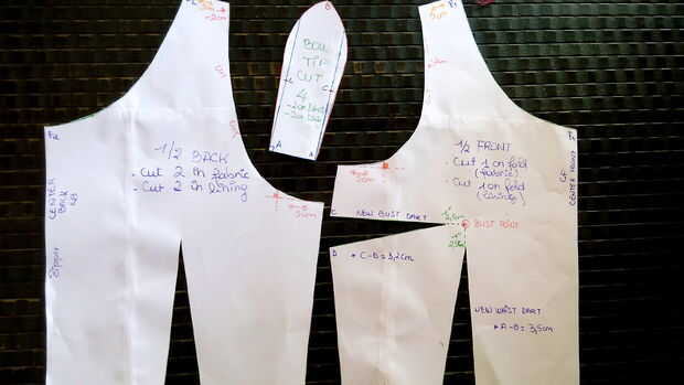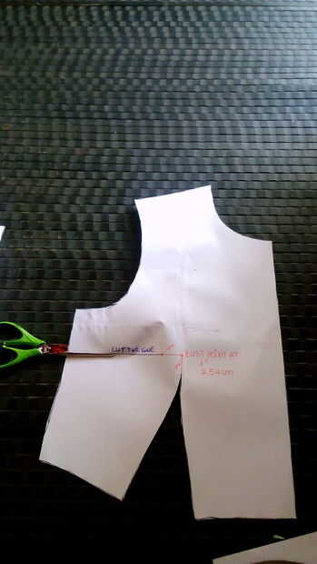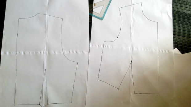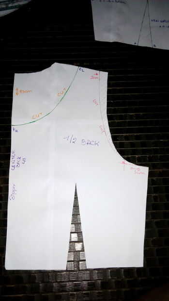 -Descargar, imprimir y cortar el patrón de la blusa. Informe en un papel, detrás y al frente.