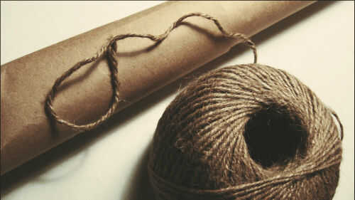 Para completar los paquetes, hemos añadido una pluma a la mezcla y entonces comenzó a ensamblar {más perdido}. Cortamos el papel a un tamaño que envuelva y se superponen en el frente y luego de todo esto con una longitud de hilo de cáñamo. Para los que fueron entregado de mano, esto es! Para los que fueron enviados por correo, fue necesario cinta hacia abajo la cuerda con cinta de embalaje transparente, según los reglamentos de USPS prohibición aparentemente ' marrón paquetes de papel atados con una cuerda. "