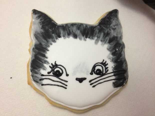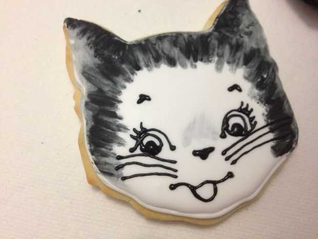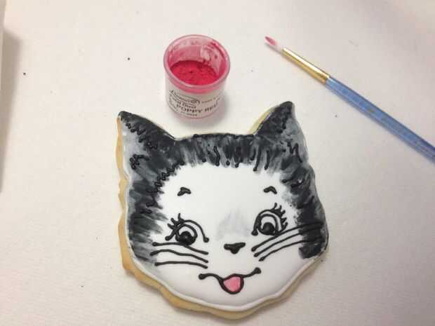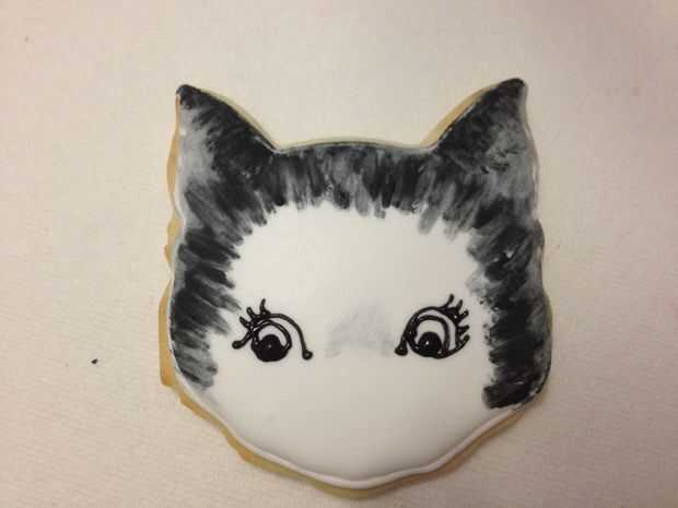 Si usted quiere - puede planear donde se las mejillas y luego cepillarlos con polvo brillo de un pastel decoración de tienda. O, lo que hice - era de hielo los bigotes en, deje secar, y luego sacan el polvo las mejillas en. (Un poco raro pero funciono). Lo mismo va para los ojos - llegaban último. (El polvo color azul).