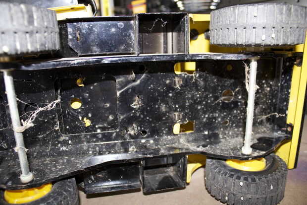 Esto variará dependiendo de qué tipo de grúa de juguete que usted consigue. Mina tenía un divisor del metal negro en el centro del cuerpo que necesitaba hacer un agujero aunque por lo que pude pasar los alambres a través de. Este juguete se llevó a cabo junto con lengüetas de metal que se inserta en el cuerpo y dobladas para que las piezas se quedaría puestas. Tuve que voltear el juguete y levante las pestañas con mi cincel y pinzas de nariz para quitarla. Quitar esa pieza hace mucho más fácil para mí llegar a ella con mi taladro.