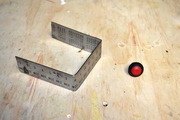 1. usted necesita alguna forma para sujetar el interruptor momentáneo debajo del tornillo dentro de la linterna. Después de la caza un poco alrededor de mi área de trabajo que decidí usar una regla de metal. Estas son fáciles de doblar, pero fuerte y estable.