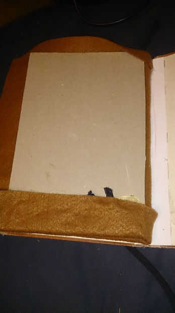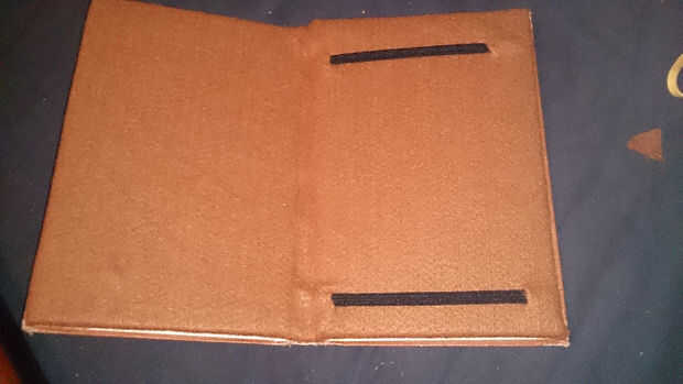 folio de otro e-reader, esta vez por un Kindle.Se necesita:Tela para cubrir las piezas y un poco extra. Usé una marrón de terciopelo y un vinilo rojo. Ambos fueron encontrados en un depósito de restos en la tienda de la tela.Cartulina. Usé cartulina