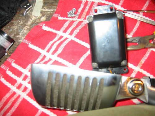 Participar los interiores en el antiguo micrófono una vez más ser cuidado de no dañar las piezas del micrófono vintage como piezas no puede ser reemplazado.
