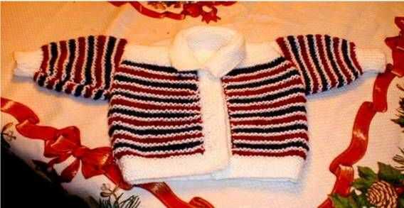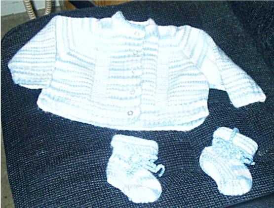 cuando mi hijo nació en 1970 le punto varias chaquetas de bebé. Mis Favoritos fueron tomadas de un libro llamado Sirdar bebé sol núm. 123, que cuesta 6 británicos "viejos peniques". Cuando mi hijo me dijo que él y su esposa esperaban a su bebé más de treinta años más tarde, salió las agujas otra vez y buscado buena viejo libro Sirdar bebé sol núm. 123. Por desgracia, ya no lo tenía, pero por suerte pude comprar en E-bay. Debe haber sido una edición posterior, como el precio de la cubierta era ahora 9 "viejos peniques". Las dos capas poco que punto de este libro para mi nuevo Nieto eran exactamente los mismos colores que los que había hecho punto todos esos años antes para su papá! Mis agujas eran muy caliente y excitada, así que continué tejer otras pequeñas chaquetas y mantas, entre los que se muestran en la presentación. Usé agujas de muy pequeño tamaño 3mm y Caron simplemente suave hilo http://www.caron.com/color_cards/cc_simplysoft.html en azul suave y blanco de los dos favoritos y retazos de lana de bebé para los demás. Algunas cosas nunca pasan de moda! Punto otro azul este año y recibió "mención honorífica" de la cinta en la Feria local del país.